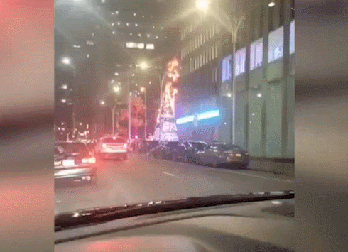 (觀察者網訊)當地時間12月8日,美國紐約市美洲大道1211號新聞集團大廈外的一顆15米高聖誕樹被人點燃,現場火光沖天,濃煙滾滾。
