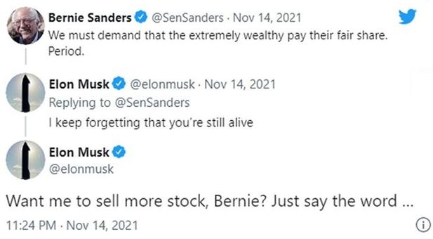 50歲的馬斯克回應這則推文時説:“我一直忘了你還活着。”“想叫我賣更多股票嗎?伯尼,直接説就是了。”