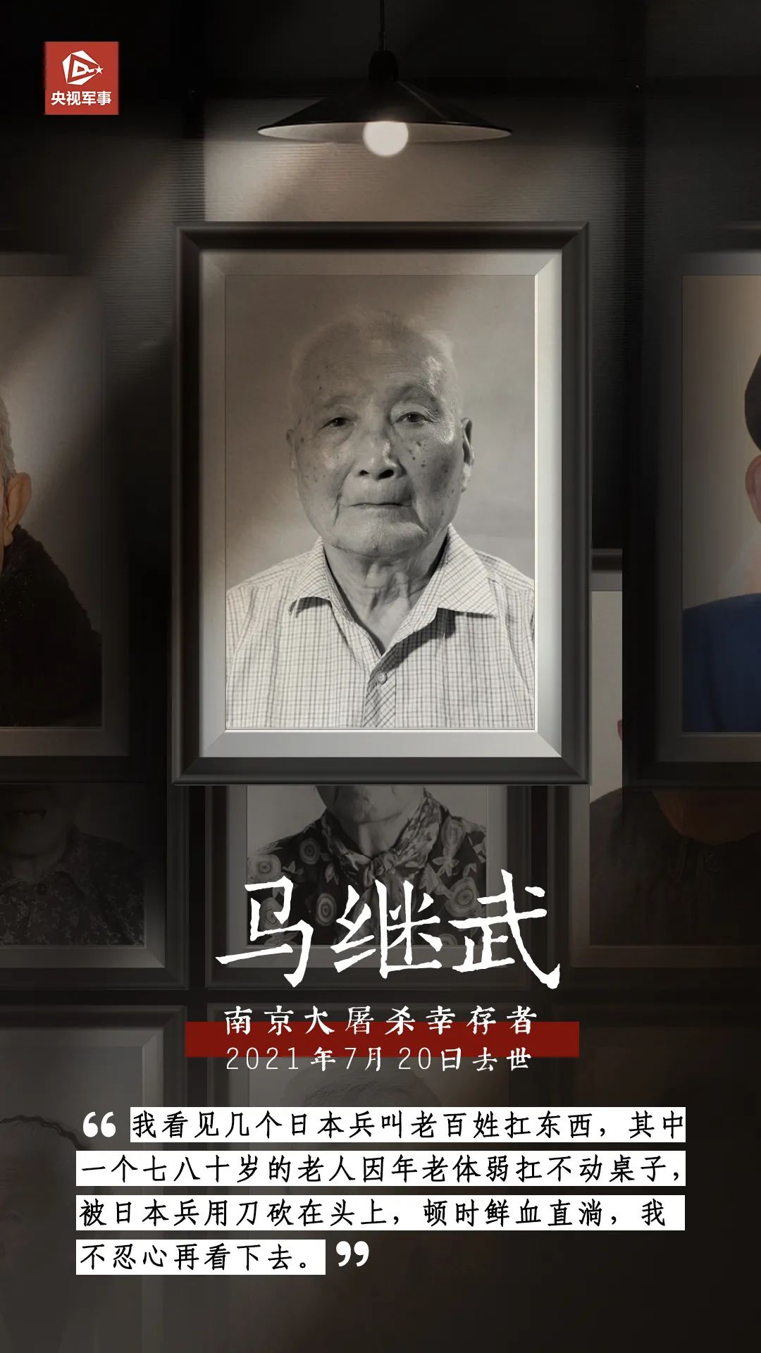 2021年7月20日,南京大屠殺倖存者馬繼武去世。
