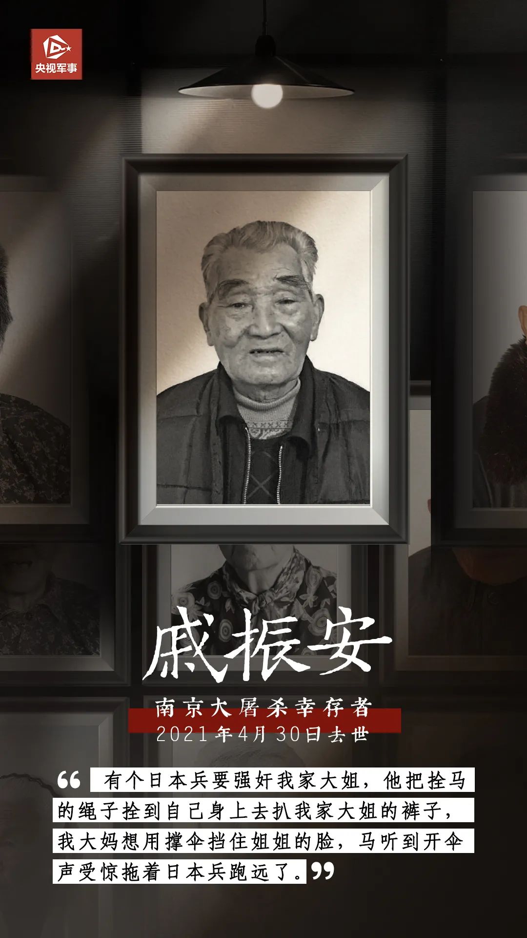 2021年4月30日,南京大屠殺倖存者戚振安去世。