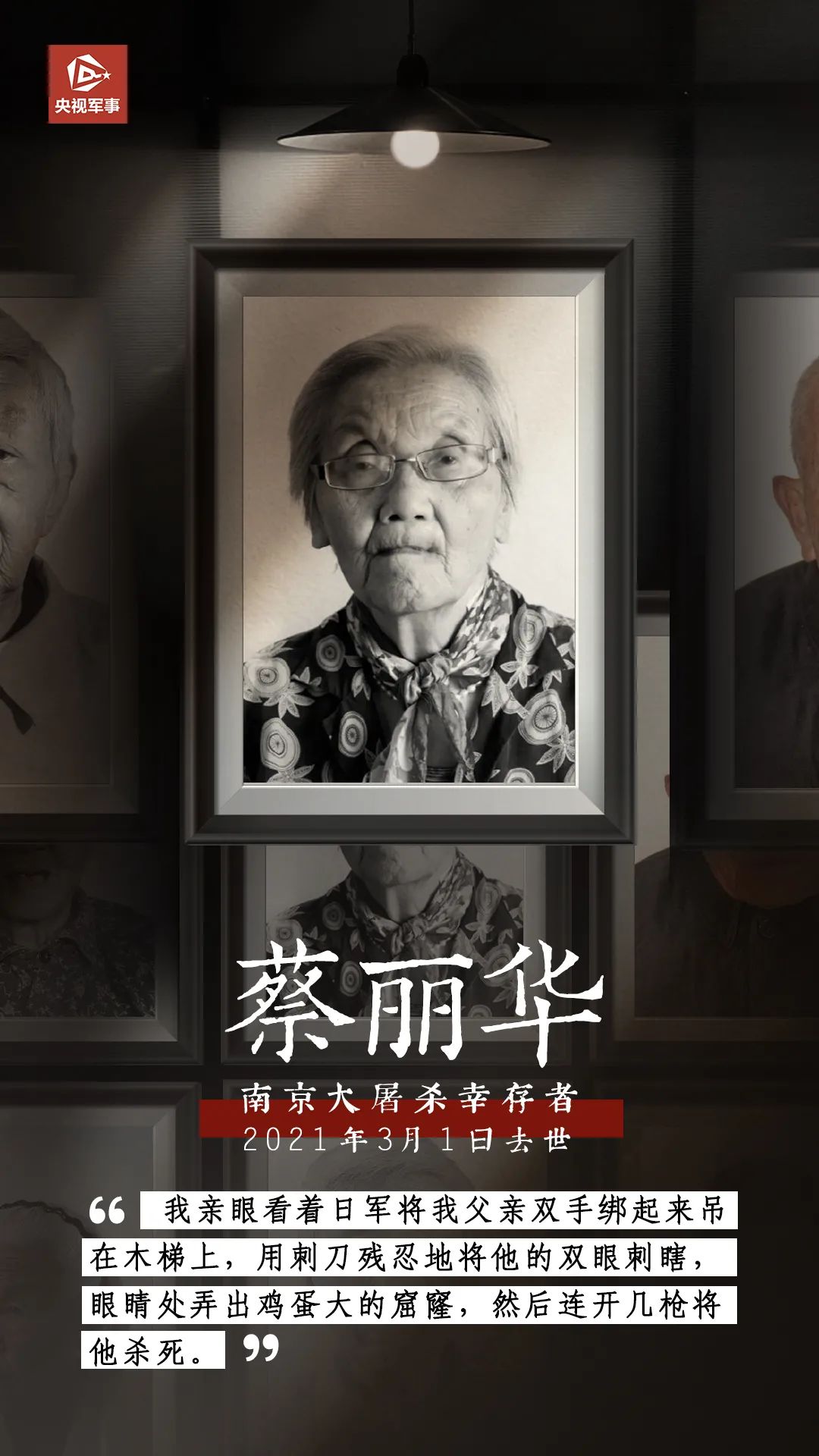 2021年3月1日,南京大屠殺倖存者蔡麗華去世。