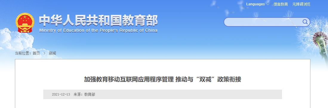 教育部網站12月13日消息,近日,教育部辦公廳印發通知,對加強教育APP管理推動與“雙減”政策銜接提出明確要求。通知指出,在各地教育行政部門完成中小學線上學科類培訓機構審批前,暫停中小學線上學科類培訓App的備案工作;已備案的相關教育App暫時從平台下線。下線的相關教育App提供者獲得中小學線上學科類培訓許可後,在平台補充許可信息,提交恢復備案申請,經所在地省級教育行政部門審核通過後恢復上線;未獲得中小學線上學科類培訓許可的,撤銷備案。