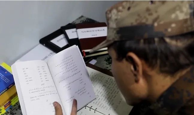 阿依鄧既學日常用語,也涉獵軍事術語,沒有教材就自費購買或從網上下載。幾年來,隨着語言翻譯能力不斷進步,阿依鄧先後完成“狙擊邊界”國際狙擊手競賽、中巴“勇士”系列駐訓聯演、中印青年軍官交流會等十餘項重大軍事活動的翻譯、教學任務,成為一名能作戰、懂溝通的特戰指揮員。2019年,他參與編寫的教材還被列為全軍特種部隊訓練大綱教學教材。