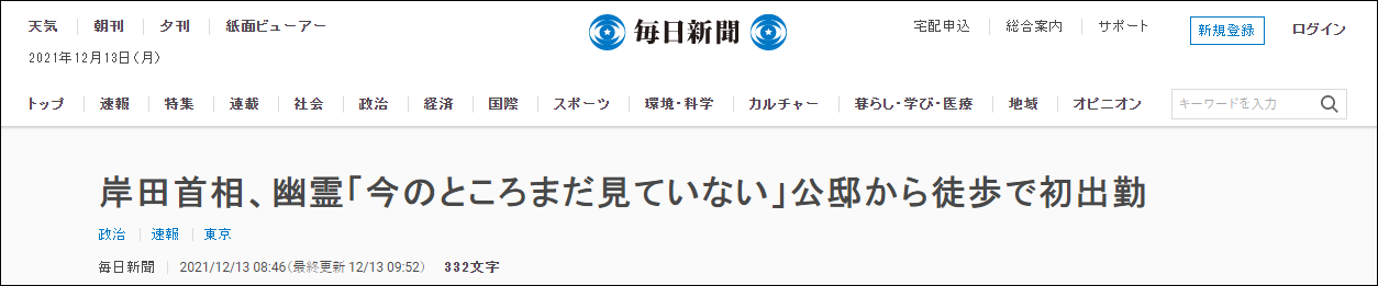 據報道,在公邸度過第一個週末的岸田文雄今日(13)上午表示,自己“睡得很好”。在被問到是否有看到幽靈時,他則笑着對記者稱,“目前還沒有見過”。
