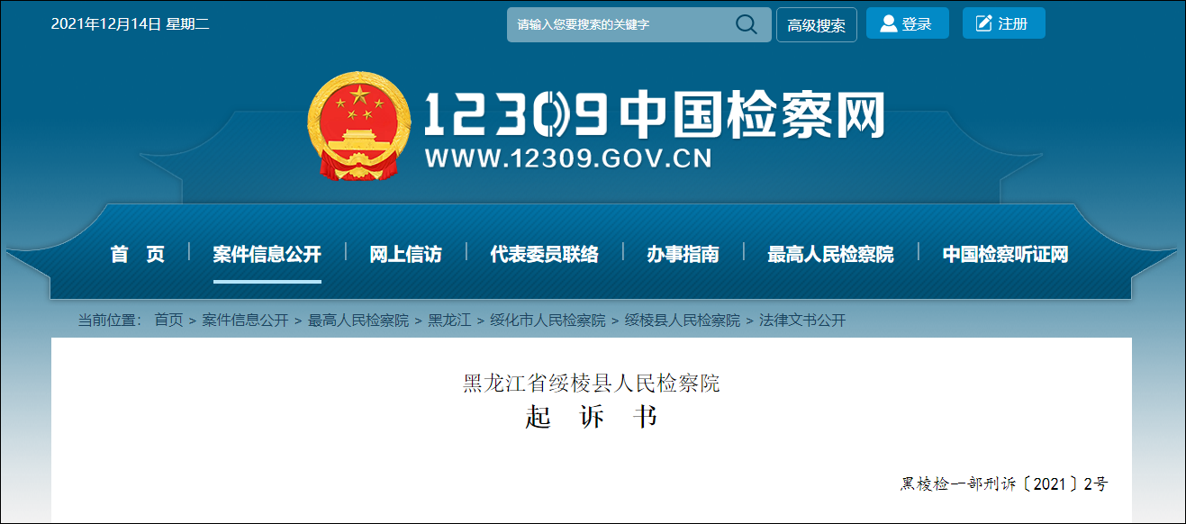 12309中國檢察網發佈的《黑稜檢一部刑訴〔2021〕2號文件》詳細記載了劉某勇涉嫌犯罪的整個過程。