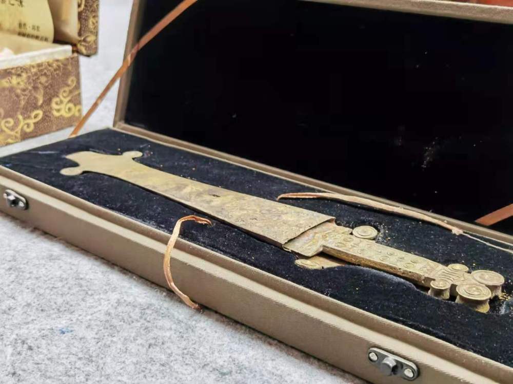 警方追繳的鹽源文化羊頭帶鞘青銅劍已有2000年曆史,被鑑定為國家一級文物。新華社記者翟翔攝