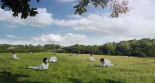 鏡頭還拍攝她們在田野上伸展着自己的身體的畫面。