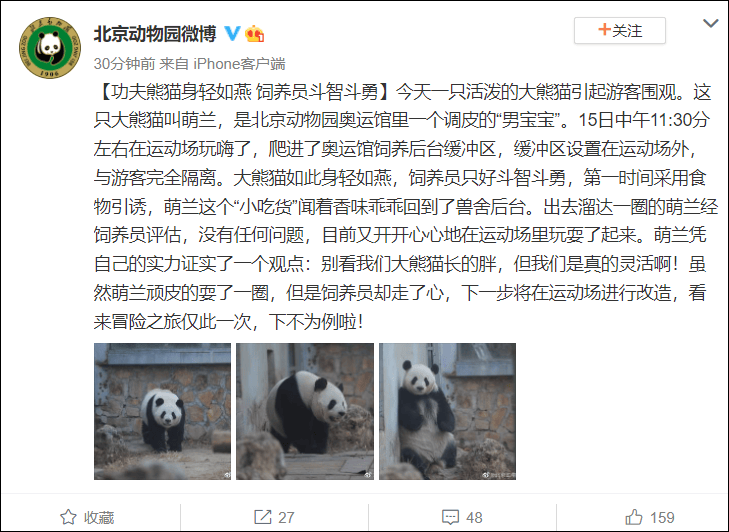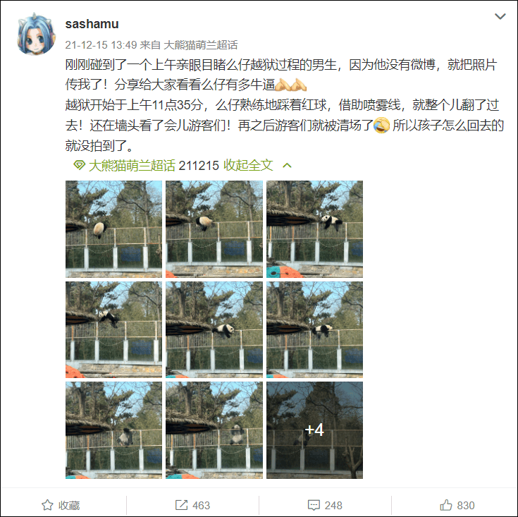 有網友評論大熊貓“萌蘭”這次的“越獄”經歷:“小小身體大大夢想”。