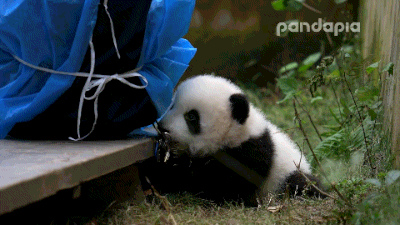 大熊貓如此身輕如燕,飼養員只好鬥智鬥勇,第一時間採用食物引誘,萌蘭這個“小吃貨”聞着香味乖乖回到了獸舍後台。
