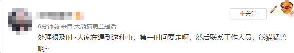 也有網友考慮到了安全問題,認為北京動物園此次處理很及時,並提醒稱,因為熊貓也是猛獸,在遇到這種情況的時候不應靠近,並及時聯繫工作人員。