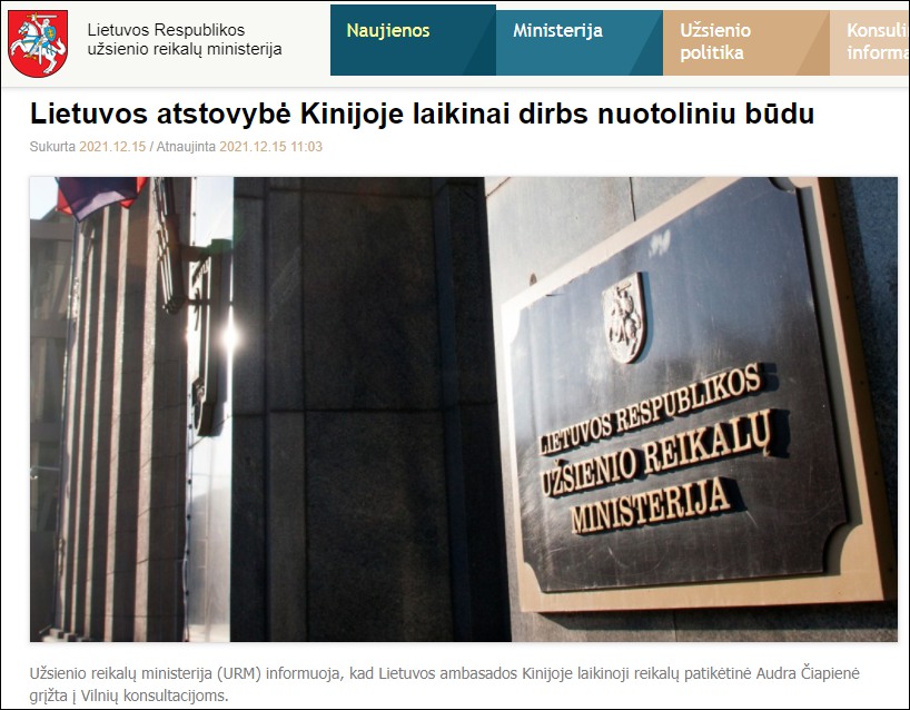 不過,立陶宛方面遲遲沒有更改名稱。在立陶宛駐華代辦處的中、英、立三語網站頁面顯示的,仍然是“立陶宛駐華大使館”這一名稱。12月15日,其“大使館”網站援引該國外交部的通報稱,立駐華臨時代辦恰皮耶尼正在返回該國首都維爾紐斯,以便就立陶宛駐華外交機構以及中國駐立陶宛外交機構運作的技術問題進行磋商,同時也是等待中方是否會延長立陶宛外交官的在華派駐期限。