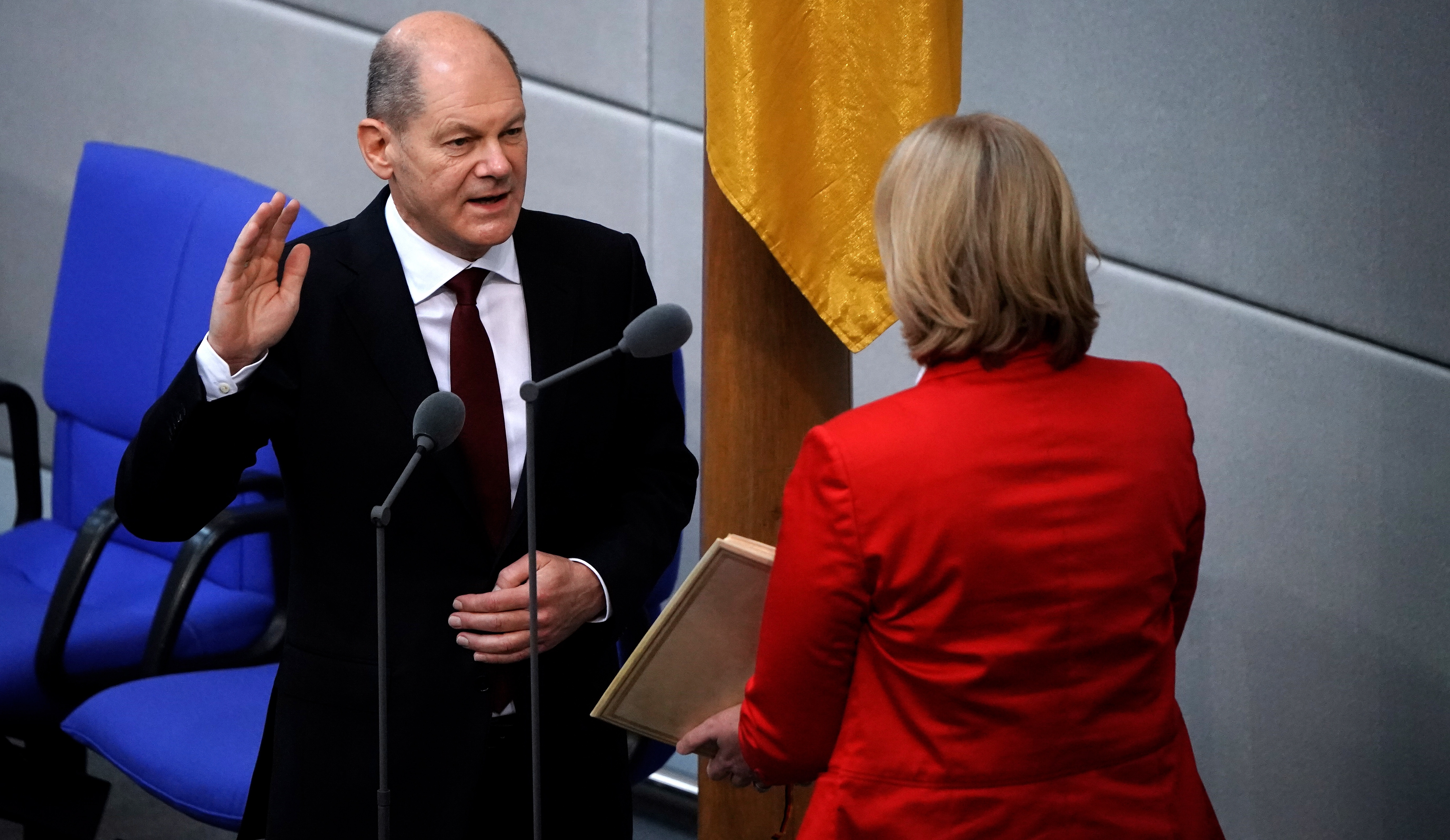 當地時間2021年12月8日,德國柏林,德國新當選總理奧拉夫·朔爾茨在聯邦議院宣誓就職。圖源:澎湃影像