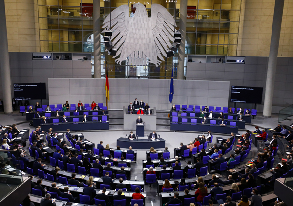 當地時間2021年12月15日,德國柏林,德國總理朔爾茨在聯邦議院發表上任後首份政府報告。圖源:澎湃影像