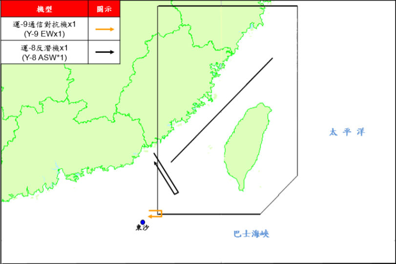 (觀察者網訊)台灣地區防務部門網站消息,12月15日日間,解放軍一架次運-9通信對抗機、一架次運-8反潛機進入台灣“西南空域”。