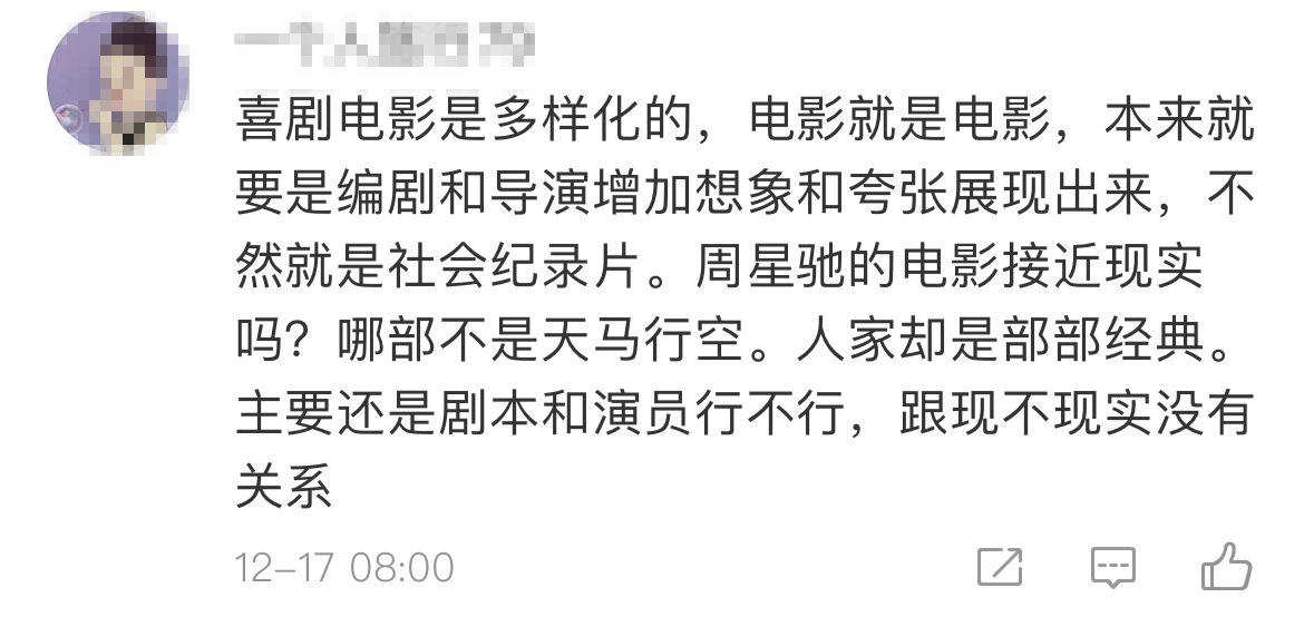 但也有網友認為,喜劇不一定要強調“離生活近”,“不然就是社會紀錄片”,“主要還是劇本和演員行不行”。