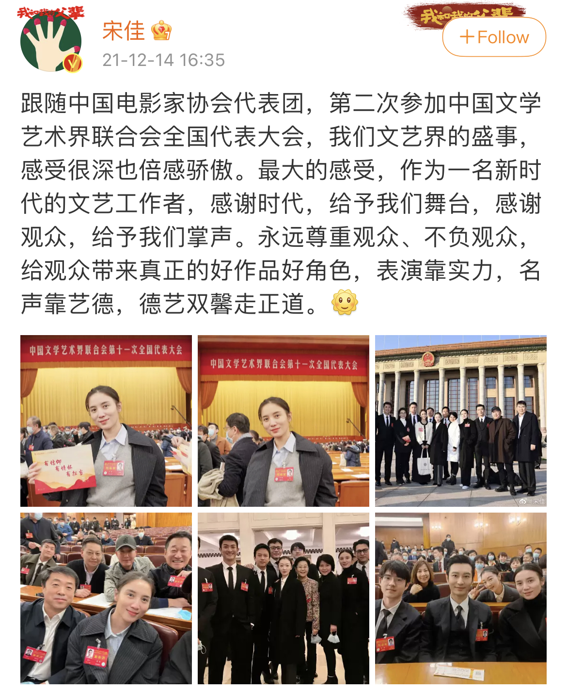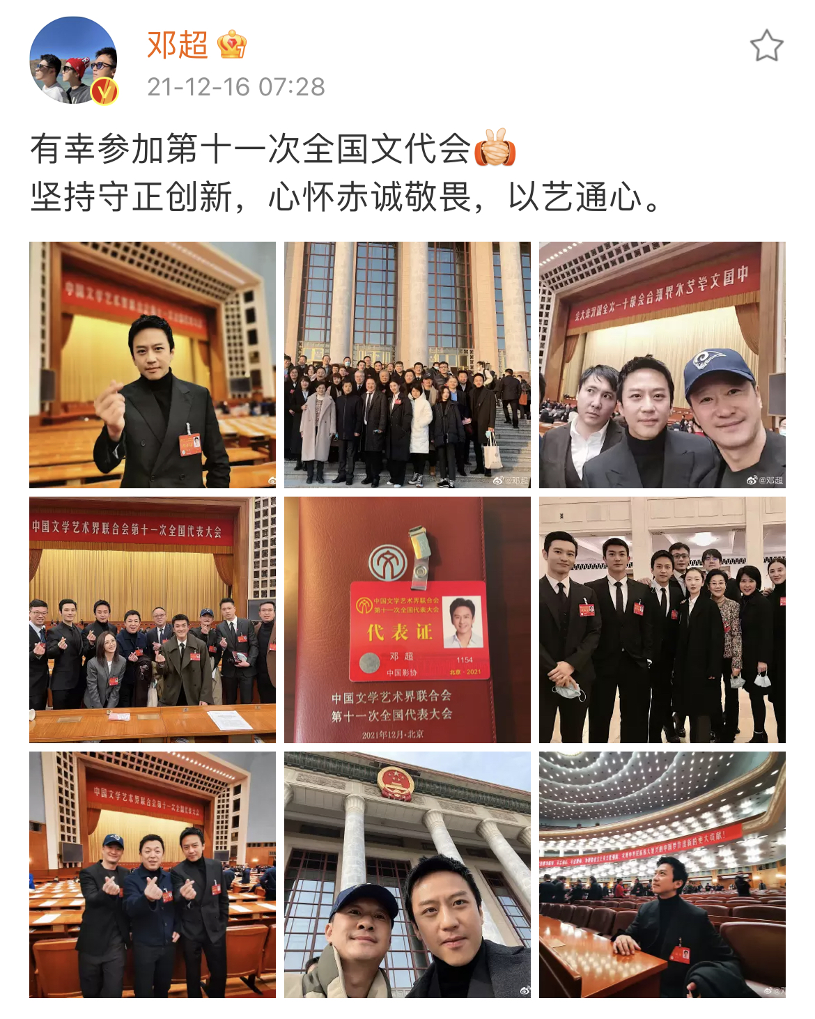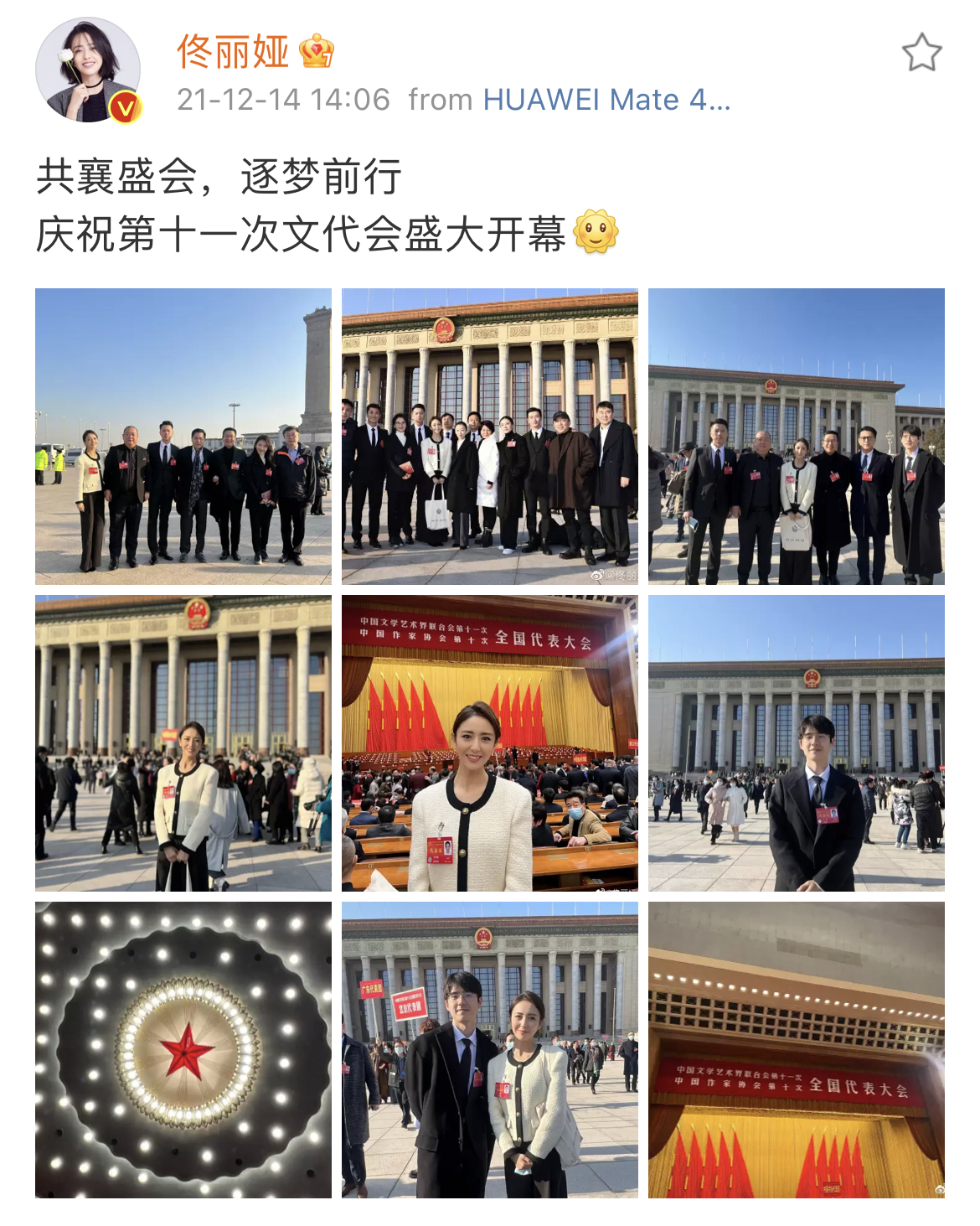 此次全國文代會期間,不少明星在微博曬出打卡照,直抒參會感想。