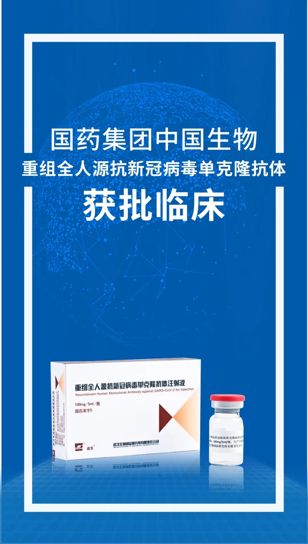 中國生物武漢生物製品研究所新冠單克隆抗體獲得臨牀試驗批件