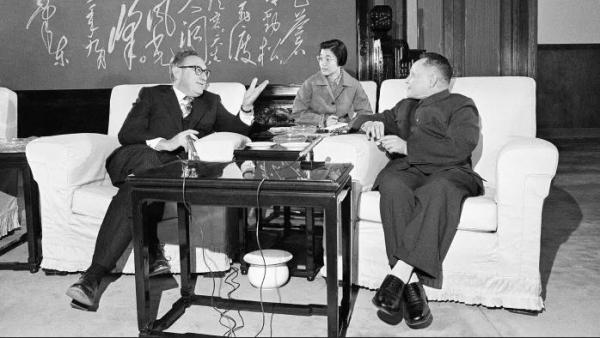 1974年11月27日,鄧小平在北京會見美國國務卿基辛格。(來源:美聯社)
