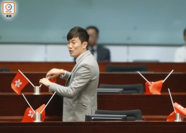 立法會議員鄭松泰倒插國旗和區旗,最終被判侮辱罪,罰款5千元