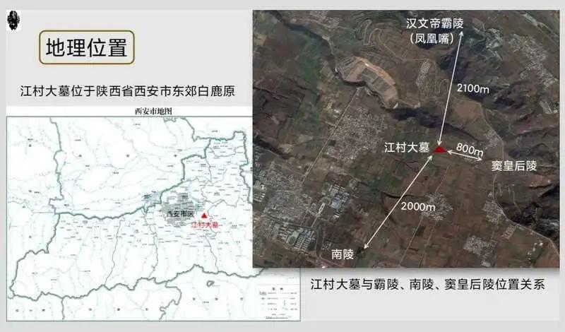 史書記載薄太后陵“東望吾子,西望吾夫”,從現有的考古材料來看,薄太后陵西隔渭水遙望漢高祖長陵,東北不遠處便是漢文帝霸陵,也就是之前的江村大墓,故當地人稱薄太后陵為“望子冢”,考古學家謂之以南陵。