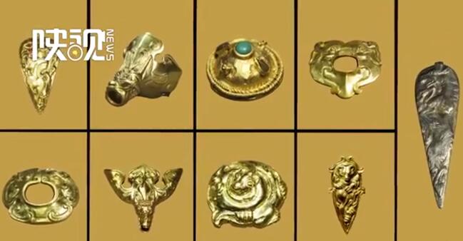 考古專家對南嶺出土的金器進行了初步研究,認為其風格具有北方草原文化特徵。風格學確實是藝術史研究的一個重要方法,就目前釋出的黃金出土物來看,大概有幾類:獸型扣飾、嵌寶石扣飾、虎型頭飾和少部分金墜飾等。獸型紋飾常見於草原文明,除了紋飾,部分出土物的形制也具有北方草原民族的特徵,比如鄂爾多斯高原上發現的阿魯柴登戰國末期匈奴遺物中,就有類似扣飾。