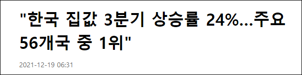 韓聯社報道“韓國房價第三季度上漲率達24%,在 56 個主要國家中排名第一”