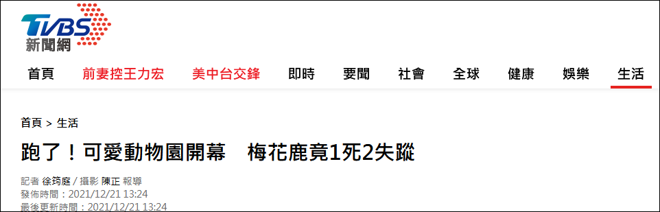 到了19日早上,人們見到其中一隻梅花鹿已慘遭野狗咬死,另一隻至今也不見蹤影。因此,20日開園時,梅花鹿園區空空如也。
