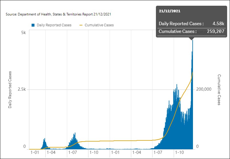 路透社指出,迅速的封鎖和嚴格的社交距離規定曾幫助澳大利亞將其病例數保持在較低水平,但在過去幾周,澳政府頂着奧密克戎的威脅重新開放了該國的大部分地區。儘管該國的疫苗接種率較高(90.6%),但近期的單日新增病例數還是在不斷地打破紀錄,這正是由奧密克戎變異株推波助瀾的結果。