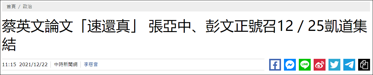 張亞中還提到,12月25日下午14點至17點,他將和一直追查蔡英文博士論文的彭文正,一同舉辦“速還真”活動,希望還原蔡英文的論文真相。另外,未來,他除了響應彭文正在網上持續追查蔡英文博士論文的行動外,也會發動更多街頭活動,讓民眾更深入瞭解此事件的疑點,引發公眾的重視。