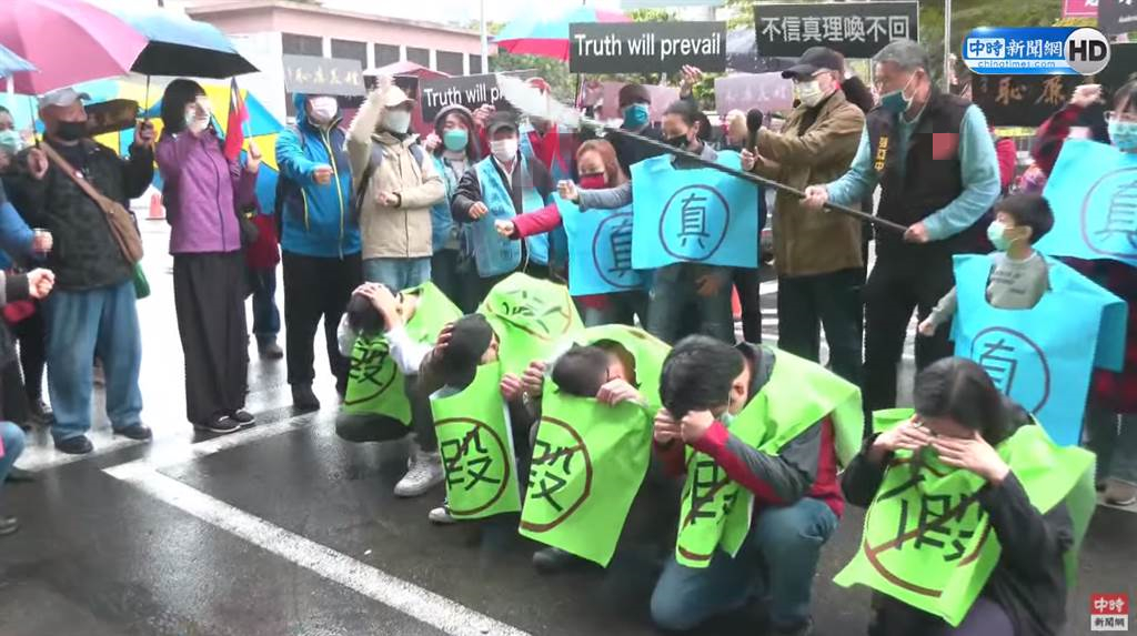 據“中評社”介紹,在活動現場,張亞中支持者扮演“真假使者”,其中還有約10歲大的小朋友,和母親一同前來響應活動。而張亞中則揮舞着關刀,象徵砍掉蹲在地上的“虛假使者”,眾人也隨之高喊“要真相”“蔡英文下台”等口號。“中評社”還稱,警方出動大批警力並架出拒馬戒護,以防張亞中等人闖入。