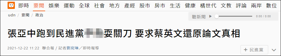 綜合聯合新聞網、中時新聞網,香港“中評社”(台北)22日報道,上午,張亞中提着關刀和約30位支持者到民進黨黨部前“踢館”,並舉行“速還真”記者會。