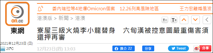 (觀察者網訊)綜合港媒報道,20日,武打巨星李小龍、成龍的替身演員陳一言,被人潑淋易燃液體及點火致嚴重燒傷,至今仍留ICU。今日(23日),傷人者67歲男子被控“有意圖使他人身體受嚴重傷害罪”,還押候訊。