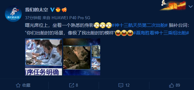 神舟十三號航天員乘組第二次出艙,聶海勝坐鎮曙光席位 None 2021-12-26 @我們的太空 消息,神舟十三號航天員乘組12月26日進行第二次出艙活動,曙光席位上,坐着一個熟悉的身影:聶海勝正看着神十三乘組出艙。腦補台詞:“你們出艙時的場景,像極了我出艙時的模樣”。