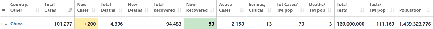然而,現實情況卻是,在西方國家,包括美國及其盟國,這種現實在一種諱莫如深的態度下“一直被保密”。蘇伊斯指出,其實只要登錄涵蓋所有國家疫情數字的網站(https://www.worldometers.info/coronavirus/#countries),人們就會清楚地看到這個現實。