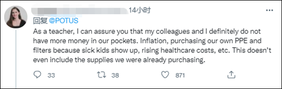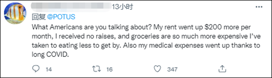 在高達6.8%的通貨膨脹之下,拜登的説法顯然無法讓普通民眾買賬。有美國網民直接戳穿道:“你説的是哪個美國人?”