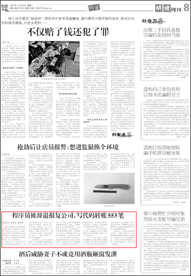 程序員被辭退後為報復公司,寫代碼給自己轉賬553筆21萬餘元