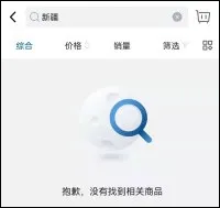 但是,點擊搜索“新疆”之後,卻得到了“抱歉,沒有找到相關商品”的結果。