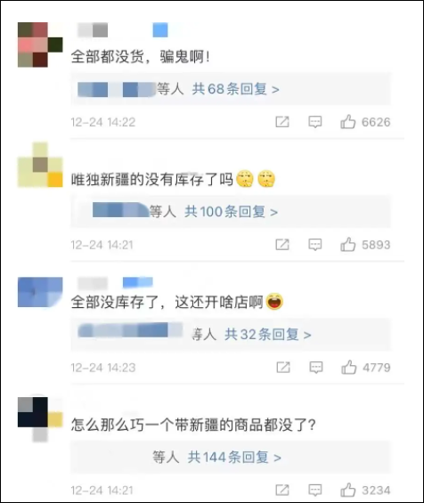 所有的新疆產品突然一起沒貨了?很多網友表示不相信。