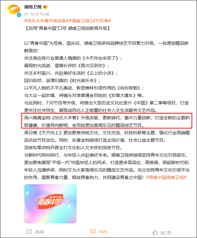 湖南衞視《你好星期六》官宣,《快樂大本營》正式告別?