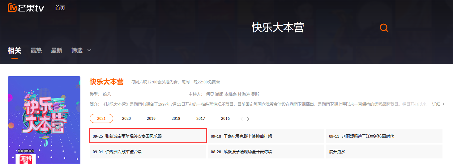 《快樂大本營》(以下簡稱《快本》)是湖南衞視推出的一檔嘉賓訪談遊戲秀節目,自1997年7月11日週五晚20:15正式開播。最初,《快本》由女主持人李湘搭檔男主持人李兵,直到1998年,人們現在熟知的主持人何炅才作為臨時頂替,與李湘組成金童玉女CP,《快本》播出時間也由之前的每週五調整至每週六。