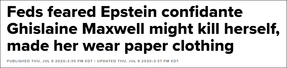 值得注意的是,據去年7月9日CNBC的報道提到,美國聯邦官員擔心麥克斯韋在關押期間自殺或被害,還特意讓她穿紙質衣服、卧具等,並安排專人負責其人身安全。