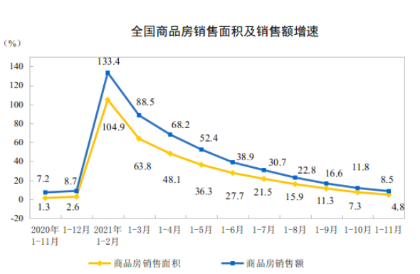 而本月15日國家統計局公佈的數據顯示:2021年前11個月,全國商品房銷售額突破161667億元,同比增長8.5%。《證券日報》指出,從數據上看,伴隨着12月收官,我國樓市銷售額很有可能再次突破17萬億元。