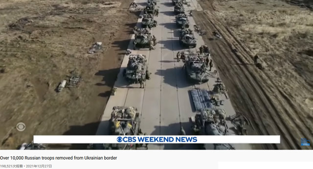 12月底,西方媒體紛紛報道稱,超過一萬名俄軍已經從俄烏邊境地帶撤離。圖片來源:CBS視頻截圖