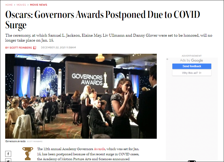 為此,《好萊塢記者報》早在22日就發佈消息,為了公眾以及藝人、工作人員的安全和健康着想,奧斯卡理事會獎(Academy Governors Awards)和評論家選擇獎(Critics Choice Awards),都決定推遲舉行。