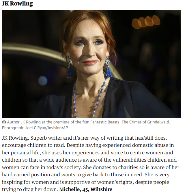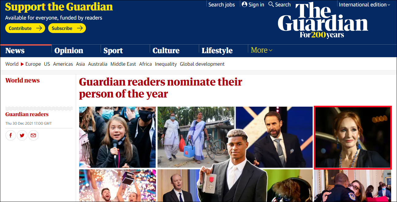 然而,在30日,《衞報》網站卻出現一篇“《衞報》讀者提名他們的年度人物”的文章,而且羅琳正在這個年度人物名單之上。