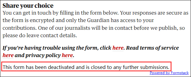 然而,據美國保守派新聞網站《每日連線》30日報道,在羅琳的提名遙遙領先其他人時,《衞報》的投票表格消失了,投票結果也消失了。 《衞報》15日的文章下還出現一段小字,提醒稱:“此表單已被禁用,不再接受任何進一步提交。”