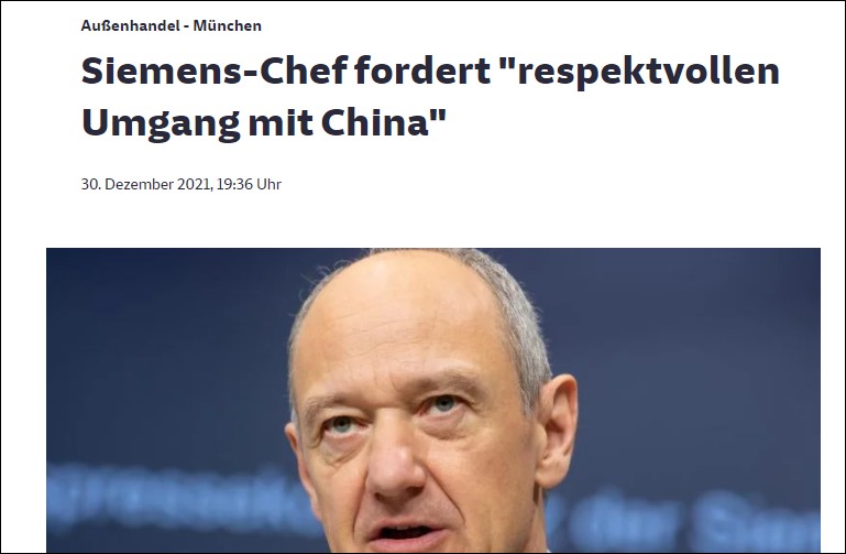 有政府高官的強硬表態在前,工業巨頭西門子的總裁博樂仁(Roland Busch)發出警告,呼籲“相互尊重”,不要同中國發生衝突,如果禁令成真,那麼德國的能源轉型可能會受到威脅。