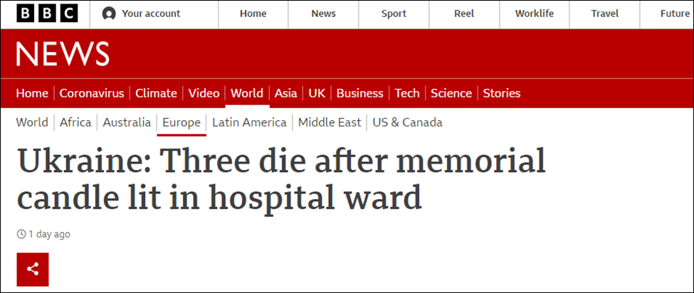 同時,BBC還提到,在疫情期間,無論是在烏克蘭還是其他地方,多起醫院火災都被認為與氧氣瓶有關。