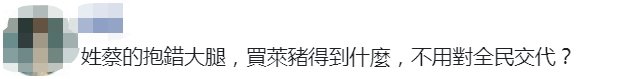 還有網友問,蔡英文抱錯大腿,買萊豬(含瘦肉精的美國豬肉)得到什麼?不用對全民交代?↓