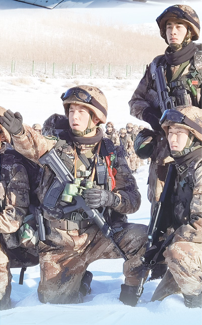 新疆生產建設兵團直屬人武部在天山北麓連續開展冬季適應性訓練。